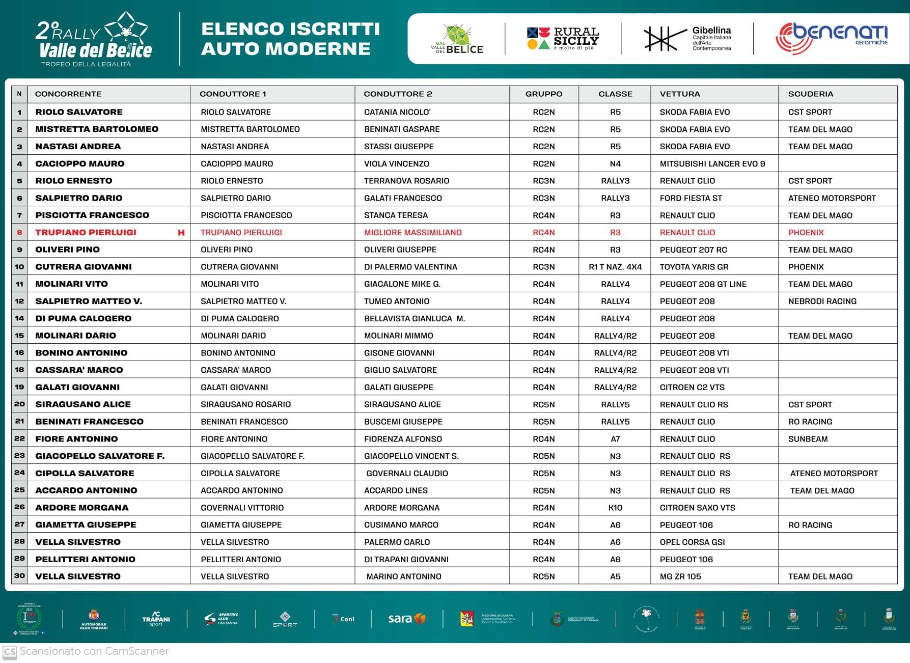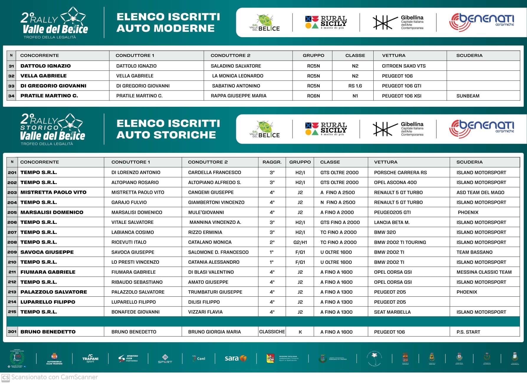 Chiuse le iscrizioni per il 2° Rally Valle del Belice, valida come seconda prova del campionato siciliano, è in programma sabato 26 e domenica 27 luglio, organizzato dall'Automobile Club Trapani, con la collaborazione dello Sporting Club Partanna.