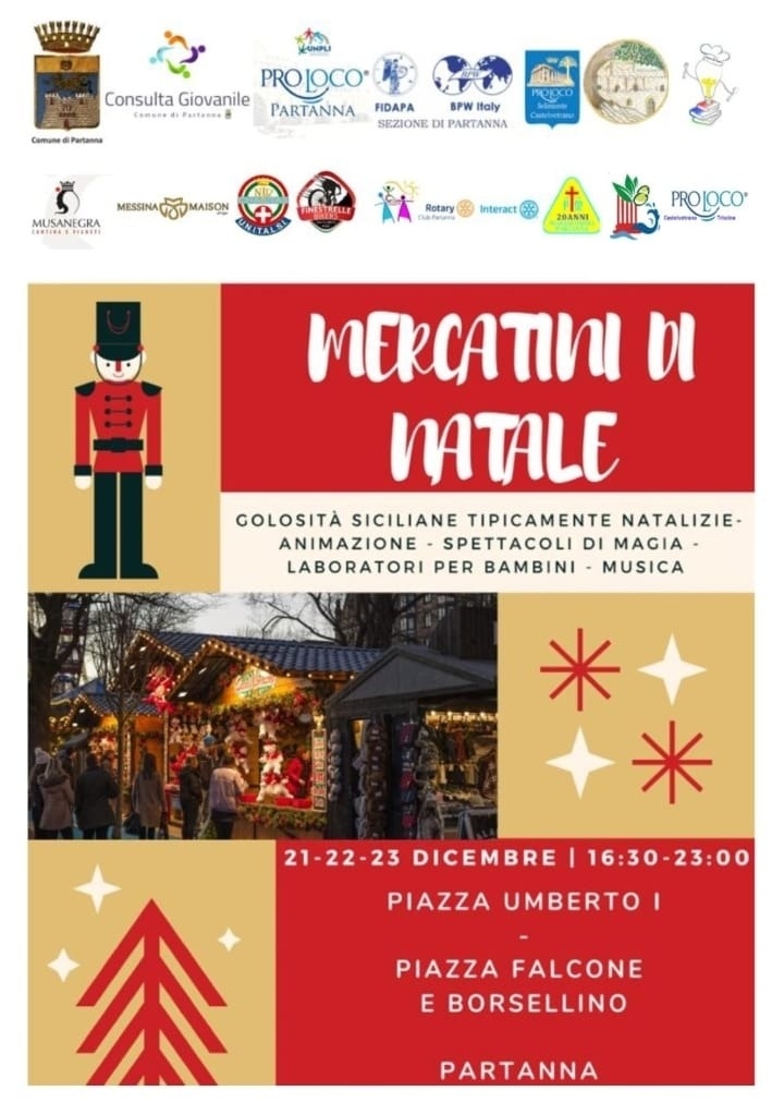 Quando si dice che l'unione fa la forza è vero ed una ennesima occasione é quella relativa all'evento patrocinato dal Comune di Partanna, realizzato dalla PRO LOCO in collaborazione con la Consulta Giovanile . L'evento si spalma su tre giornate, il 21-22-23 dicembre dalle 16 alle 23. Diverse le attività in programma.Partecipare per credere...Nell'ambito dell'iniziativa l'associazione Pro Loco si fa promotrice di collaborazioni con associazioni, locali e non, proprio per dare maggior respiro all'evento e perché ancora una volta si precisi che l'unione fa la forza.