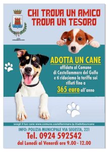 Il sindaco: “Incentivo all'adozione dei cagnolini abbandonati per migliorare il benessere degli animali e limitare anche i costi sostenuti dal Comune “Prenditi cura di loro”: avviata la campagna dell'amministrazione comunale per sensibilizzare all'adozione dei simpatici cagnolini affidati all'ente e che si trovano sul sito comunale all'indirizzo http://www.comune.castellammare.tp.it/adottauncane/. E adottare un cane da un canile convenzionato a Castellammare del Golfo conviene non solo perché “chi trova un amico trova un tesoro”, come recita la campagna del Comune, ma anche perché per invogliare ulteriormente è previsto un incentivola tassa sui rifiuti ridotta fino a 365 euro annui per un massimo di tre anni.