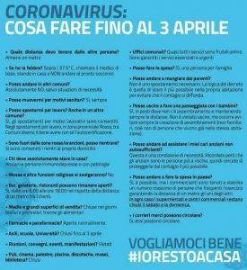 Da ieri sera la nostra redazione è stata tempestata di domande sugli effetti e le limitazioni imposte dal nuovo provvedimento governativo messo in campo per fronteggiare il propagarsi del Corona Virus. Di seguito una serie di domande e risposte esplicative ed il link per scaricare il modulo per l’autodichiarazione: