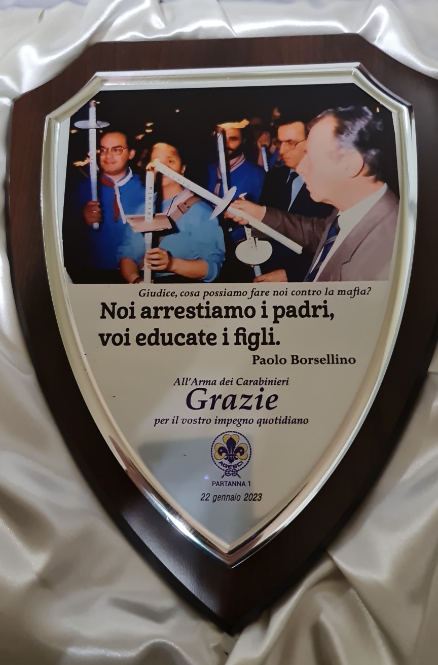 A distanza di circa 5 mesi dell'arresto di Matteo Messina Denaro, avvenuto lo scorso 16 gennaio, gli scout dell'AGESCI di Partanna, hanno voluto donare una targa celebrativa al comandante della locale stazione, Luogotenente Vincenzo Bonura. L'evento era previsto a gennaio ma rimandato fino ad oggi per i vari impegni delle forze dell'ordine.