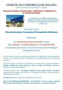Emanuele II di Castelvetrano – Emergenza Covid-19". I report delle donazioni saranno pubblicati nella sezione Emergenza Coronavirus presente nell’home page del sito istituzionale del Comune, all’indirizzo www.comune.campobellodimazara.tp.it. Nel frattempo continuano le iniziative solidali portate avanti da diversi cittadini, artigiani e imprenditori locali al fine di distribuire un consistente numero di mascherine a gran parte della cittadinanza.