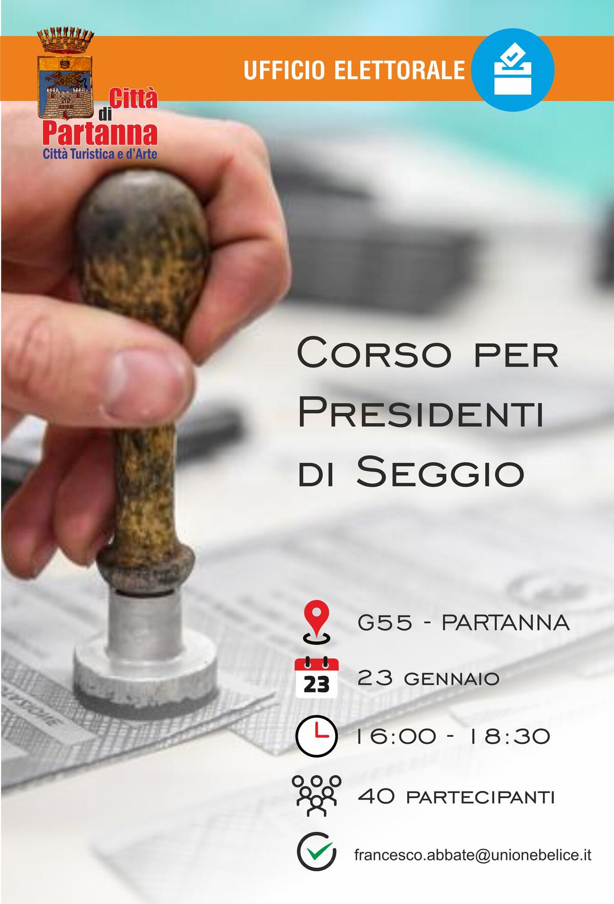 L'ufficio elettorale di Partanna, nella persona del responsabile Francesco Abbate, in vista delle prossime elezioni amministrative terrà un corso per presidenti di seggio; ad affiancarlo ci sarà il presidente della sezione n. 1 Giuseppe Catania.