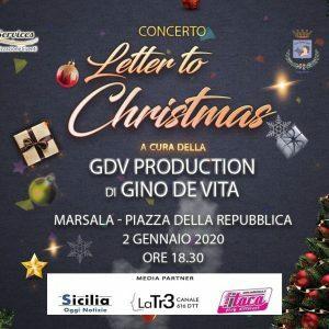 Continuano a Marsala gli appuntamenti programmati per il periodo delle Festività natalizie, tutti con il patrocinio dell'Amministrazione comunale. Si comincia questo pomeriggio con il recupero dello spettacolo “Letter to Christmas” di Gino De Vita (era stato rinviato ad oggi per il maltempo): concerto alle ore 18.30, in Piazza Della Repubblica. Domani, 3 Gennaio, “Magie di Natale” propone “Happyfania”. L'appuntamento è ad Amabilina alle ore 16 (sarà replicato Sabato 4 a Sappusi, alle ore 16.00).