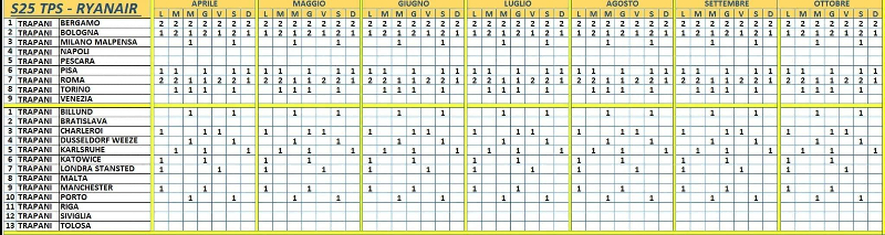Tanti i collegamenti in calendario verso mete nazionali ed europee. Secondo quanto riporta sulla sua pagina Facebook "Sicilia in Volo", alcune tratte: Napoli, Pescara e Venezia / Treviso in Italia e Bratislava, Malta, Riga, Siviglia e Tolosa in Europa non sono ancora in vendita.