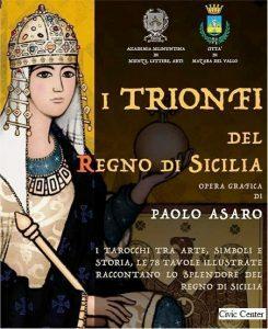 Si tratta di una mostra di opere grafiche (carte illustrate, tarocchi) del prof. Paolo Asaro, composta da 78 tavole aventi come tema il periodo storico che va dalla fondazione del Regno di Sicilia nel 1130 d.c. fino all’epoca di Federico II di Svevia (dagli Altavilla agli Hohenstaufen). La mostra, che sarà fruibile fino al 16 luglio negli stessi giorni ed orari degli altri siti museali, è inserita in una serie di eventi culturali dal tema “La Sicilia ed il Medioevo” che prevede un ciclo di conferenze, anch’esso avviato a marzo e subito interrotto per l’emergenza Covid, che riprenderà nella prima settimana di luglio (il programma dettagliato sarà reso nei prossimi giorni).