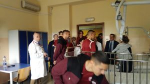 Festa stamattina tra gli otto bambini ricoverati al Sant’Antonio Abate nel reparto di Pediatria per la visita dei giocatori del Trapani calcio. Gli atleti si sono intrattenuti con i piccoli pazienti distribuendo doni e gadget della squadra granata regalando un momento di autentica emozione ed entusiasmo soprattutto fra i più grandi. Il reparto di Pediatria guidato da Marcello Palmeri, infatti, al momento ospita ricoverati dai due mesi di vita sino a 16 anni. L’iniziativa nasce dalla collaborazione fra la direzione strategica dell’Azienda sanitaria provinciale di Trapani e la dirigenza sportiva della squadra di calcio, con la precisa finalità di regalare un momento di puro entusiasmo ai bambini che in prossimità del Natale sono ricoverati nel reparto di pediatria dell’ospedale.