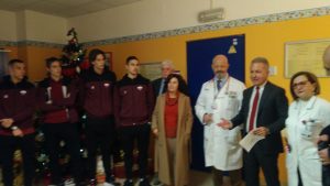 “E’ sempre bello regalare un sorriso in prossimità delle festività natalizie, specie se si tratta di bambini. Lodevole l’iniziativa di portare alcune ore di spensieratezza ai più piccoli: un’esperienza a cui sono stato ben lieto di partecipare insieme ai miei compagni”, ha detto Andrea Dini, portiere della squadra di calcio.